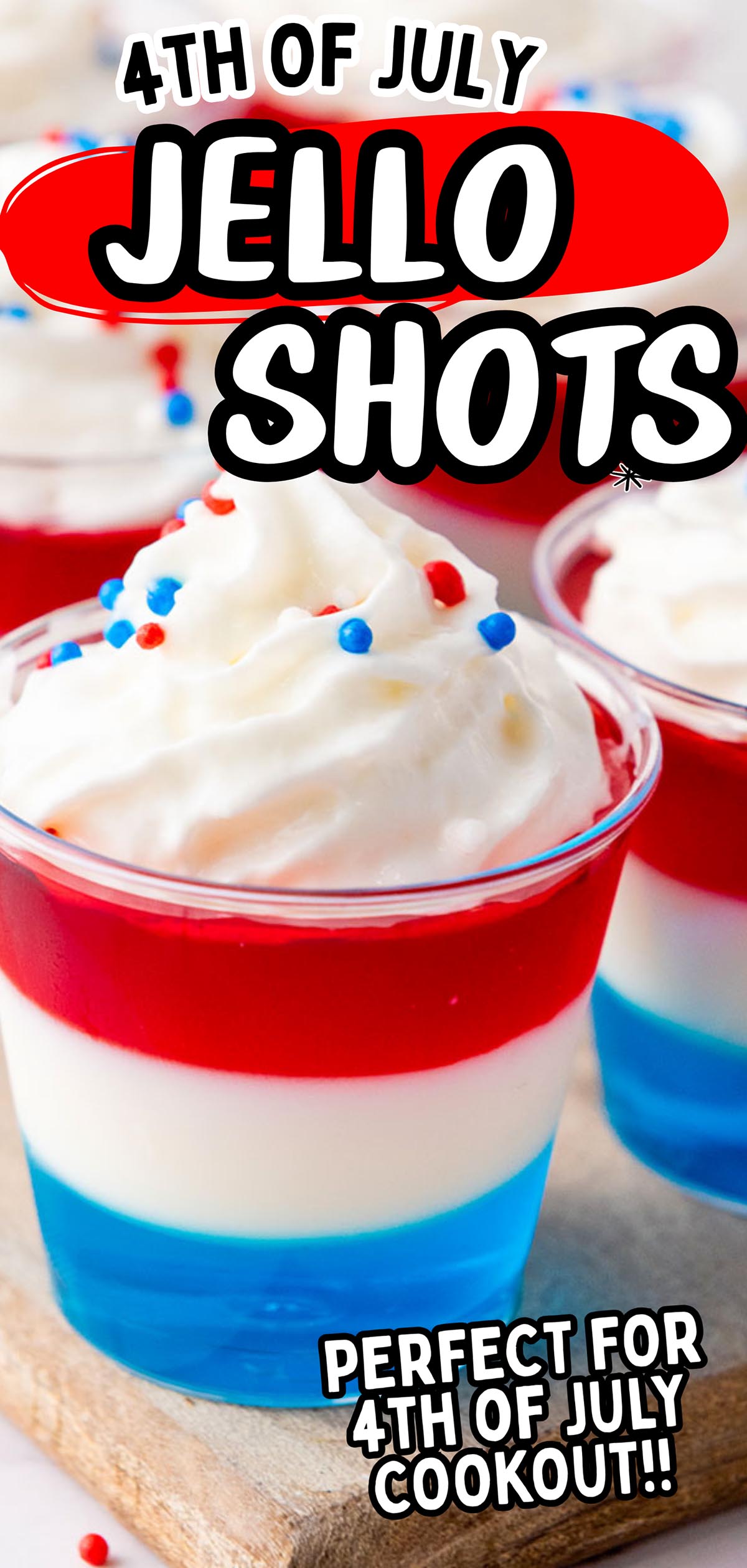 - Right before serving, top with whipped cream and red, white, and blue sprinkles. Serve cold!